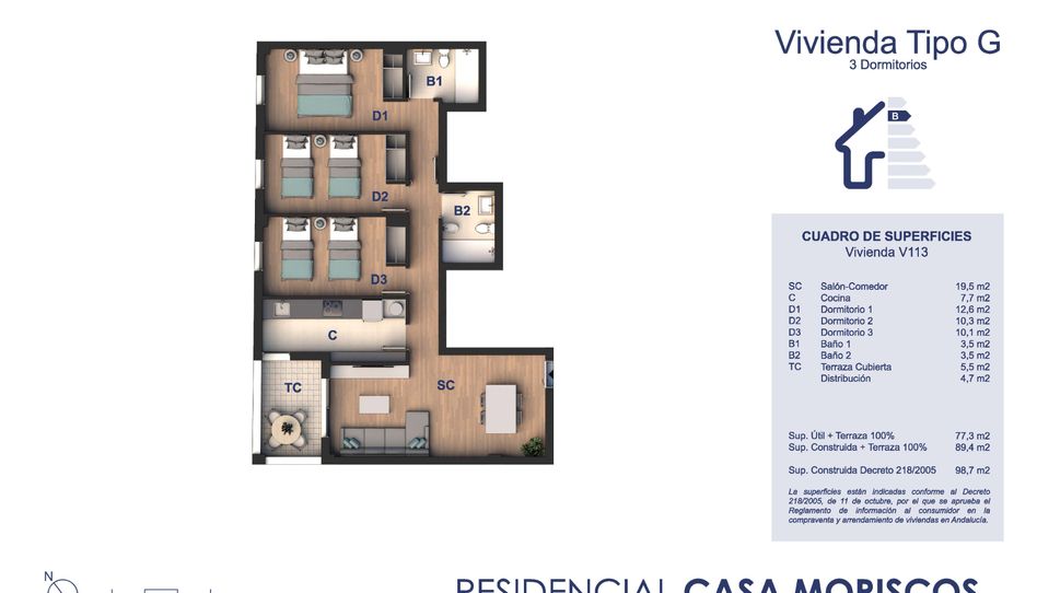 Empezamos a comercializar el Residencial Casa Moriscos en Los Barrios (frente al Pizza Way) . Esta vivienda consta de 3 habitaciones, 2 baños, cocina, salón-comedor y terraza cubierta de 5.5m2 ( V113 ) 193.450€+IVA . Las calidades que lleva la vivienda son de alta calidad . El residencial dispone de piscina comunitaria , plaza de garaje ( 18.000+IVA), placas fotovoltaicas para la comunidad...... LLámanos y estaremos encantados de enseñaros el proyecto completo. Mila Olmedo