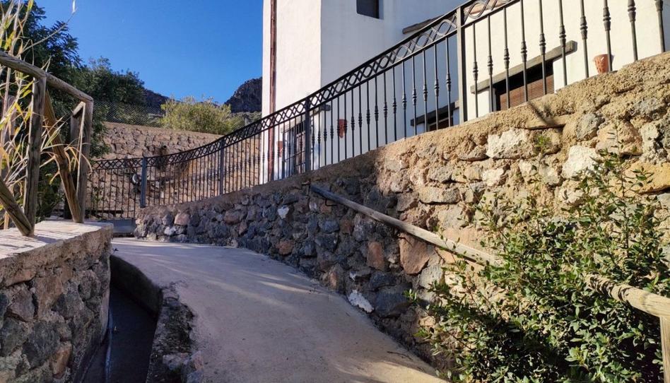 La casa consta de de 5 dormitorios, 2 en planta baja y 3 en la alta, el principal con acceso a una gran terraza dónde se divisa el valle y unas espectaculares vistas del entorno. El salón/comedor amplísimo unido a la cocina, con puerta de salida trasera y vigas de madera para decorar su techo, además de chimenea y una alacena. Como no podía ser de otra manera, también su pequeña bodega. Baño completo con plato de ducha en planta baja y en la alta completo con bañera, despensa, carpintería de madera en puertas y ventanas estilo rústico, armarios empotrados, suelos de gres porcelánicos, aire acondicionado. La gran mayoría del mobiliario se queda. - Agua para riego de la fuente del marchal ( agua en la fuente de excelente calidad, incluso para beber.
