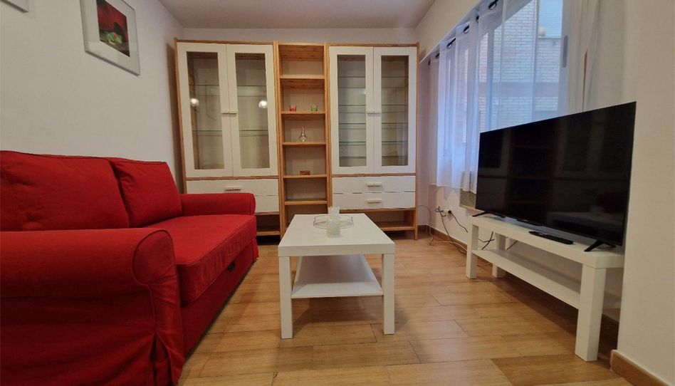 5. Salón con sofá-cama, estanterías, TV 43” y equipo de aire acondicionado fríocalor. Con una ventana a un patio de 25m2.