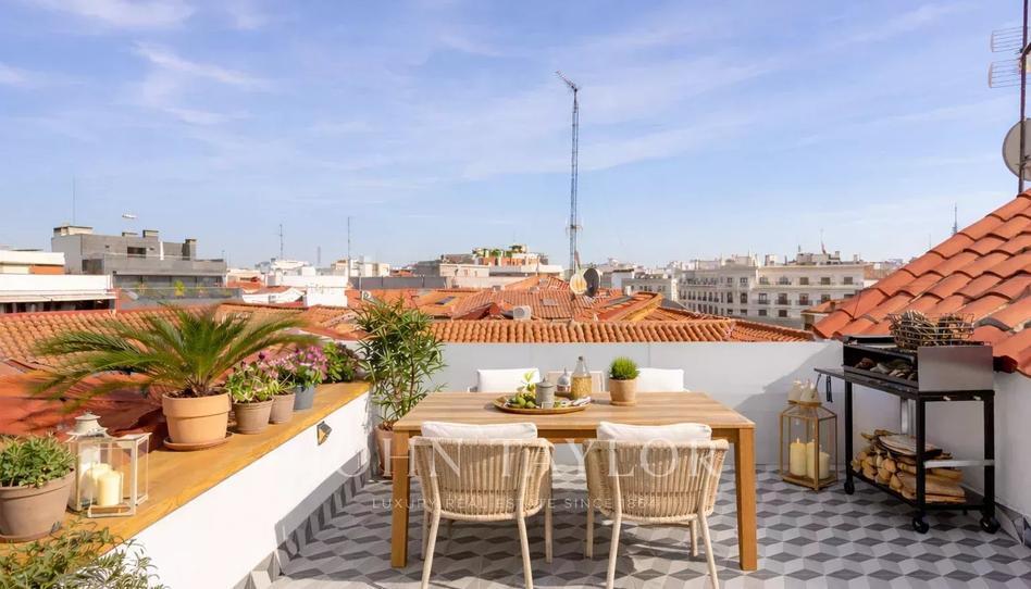 Este dúplex destaca por su espectacular terraza, que se eleva imponente sobre los edificios vecinos, ofreciendo vistas al cielo madrileño con total privacidad y sin ruidos, gracias a su ubicación estratégica.