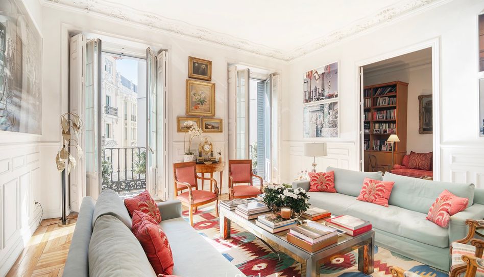 Spain Sotheby’s International Realty presenta este espectacular piso en el corazón de Madrid, a pocos pasos del Museo Thyssen y del Congreso de los Diputados. Una verdadera joya en una calle tranquila, con todos sus balcones orientados al exterior, que llenan cada estancia de luz natural y vistas encantadoras.