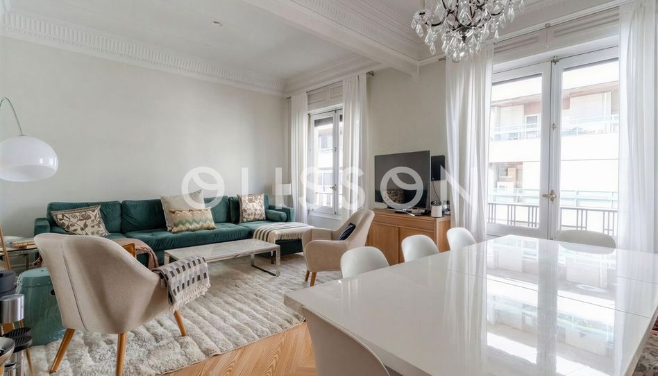 Olisson Club presenta este piso ubicado en una cuarta planta exterior. Esta elegante vivienda de 150 m² destaca por su carácter y proporciones, propias de las fincas clásicas del barrio de Almagro. Sus techos de 3,25 metros de altura, que conservan las molduras originales de la época, aportan una sensación de amplitud y distinción difícil de encontrar.