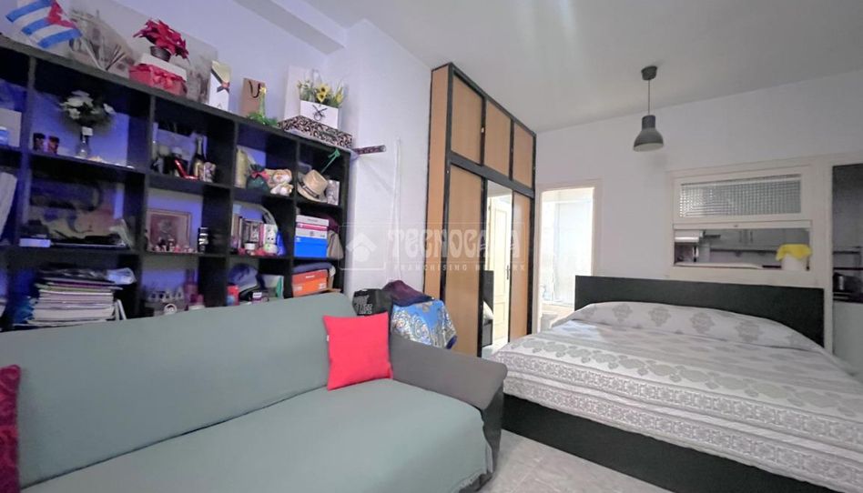 Inmueble tipo estudio acogedor en entreplanta, con espacios bien definidos: cocina independiente, baño completo y una amplia estancia principal que combina salón y dormitorio en un ambiente abierto.