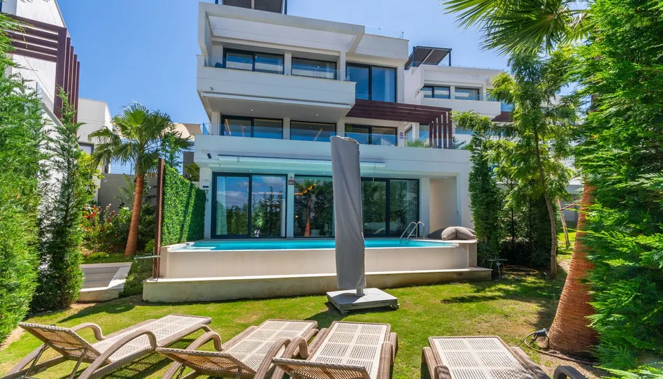 Moderno villa de lujo en La Cala Resort. La Villa tiene salon/comedor con cocina americana en la planta baja , también en este nievel hay un dormitorio con baño ensuite. Hay un aseso también. El salon tiene acceso a la terraza cubierta con vista al jardin y piscina. En la primera planta hay otra dos dormitorios ensuite y de esta planta hay acceso al grande solarium con jacuzzi. Hay vistas panoramica a los mountañas, golf, campo y hasta al mar. En el sotono hay cine/bar, otra dormitorio ensuite, office, baño, lavadero y salida a la piscina y jardin. La Cala Golf tiene 3 campos de golf de 18 hoyos deseñado por Cabell Robinson, los campos se llama America, Asia y Europa, campo pequeña de par 3 y Academia de Golf y Campo de practica. Solo 10 mins al pueblo de La Cala de Mijas y 20 mins al Centro de Fuengirola y 30 a Marbella y al aeropueto de Malaga a solo 40 mins. Ideal para vivir durante todo el año o uso por vacaciones.