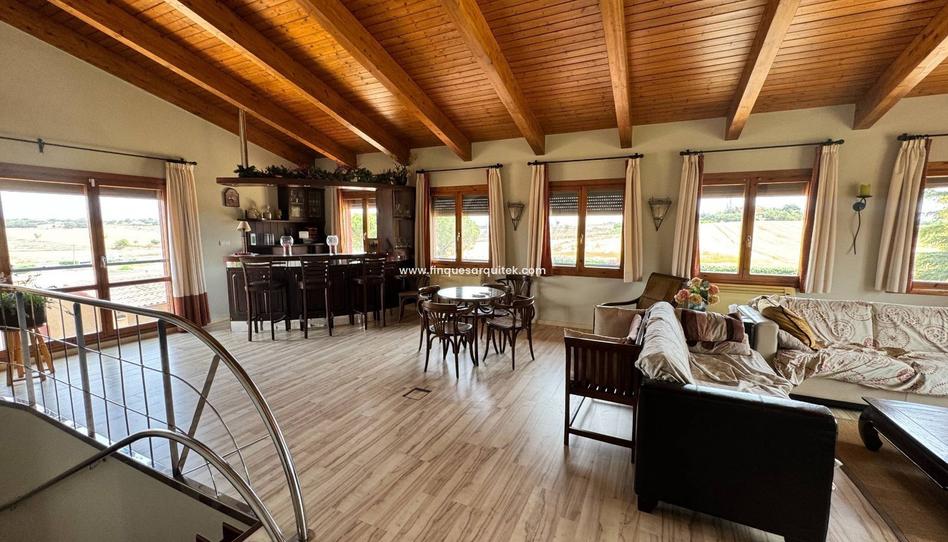 El salon tiene techo altos, con vigas de maderas muy chulas y unas vistas al exterior y a las montañas muy agradecidas.