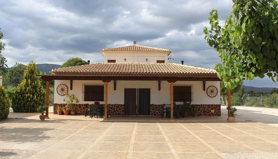 Se vende chalet rústico en Moratalla, con 7.000 m² de parcela, vivienda de 300 m² dividida en 2 viviendas con buhardillas, zona de horno-barbacoa exterior, piscina privada de 5 X 10, terrazas, porche, zonas ajardinadas, 2 cuadras para caballos, etc... 8 dormitorios y 2 baños en total, plantas bajas: 3 dormitorios, salón comedor con estufa de leña y cocina equipada integrada, 1 baño, planta 1ª: buhardillas, suelos de gres, carpintería interior pino lacado, armarios, carpintería exterior aluminio termo lacado color madera con doble cristal, calefacción por radiadores en toda la vivienda, entorno tranquilo. En cultivo 42 olivos.