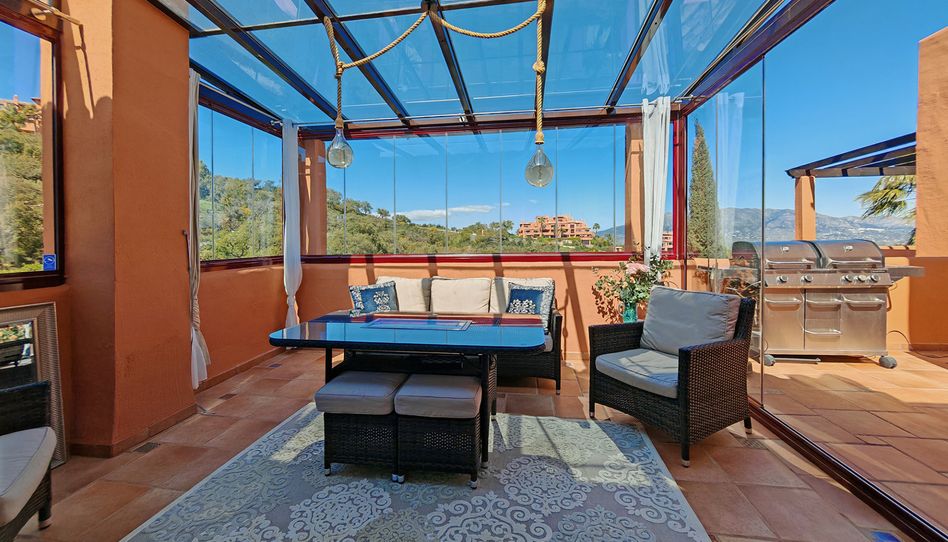 Ubicado en un entorno privilegiado junto a un campo de golf, rodeado de naturaleza y a pocos minutos de la costa, este elegante dúplex en La Mairena, Marbella, ofrece espectaculares vistas al mar, al golf y al entorno natural.
