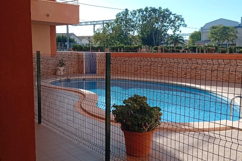 El residencial tiene piscina con ducha y esta a 5 minutos en coche de la playa.