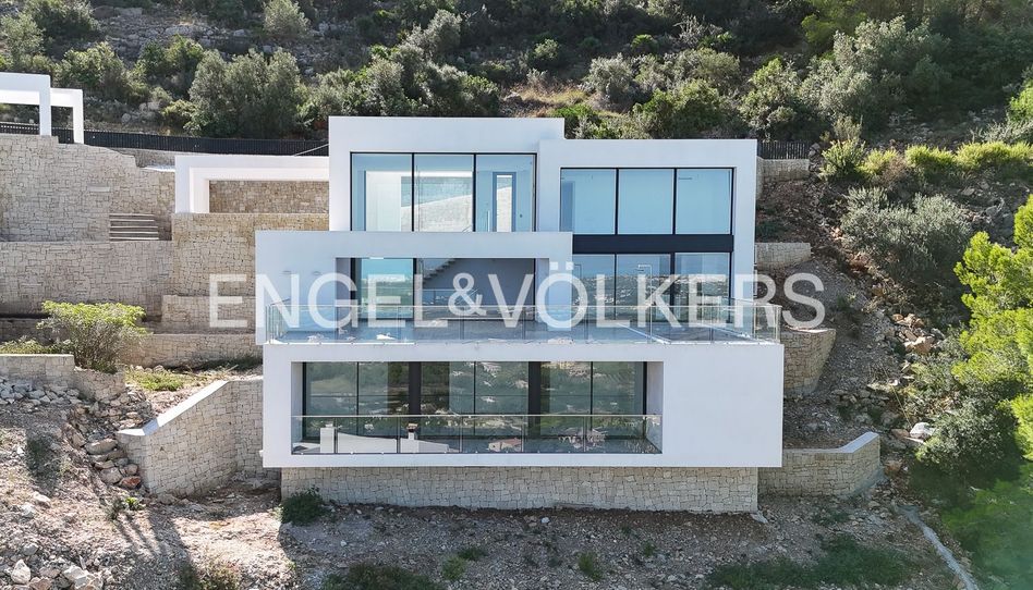 Engel & Voelkers su agente inmobiliario para propiedades de lujo de alta calidad presenta esta fantástica propiedad en la hermosa zona residencial de La Sella. La casa (una villa en un proyecto conjunto de 2 casas) en una parcela de 1.219m2 (calle sin salida) es llave en mano y se puede ver en cualquier momento. Los 590m2 de espacio (incl. terraza) se distribuyen generosamente en 3 niveles habitables, que están conectados por un ascensor. Las principales características arquitectónicas de la propiedad son techos muy altos con enormes fachadas acristaladas, que ofrecen impresionantes vistas sobre la costa mediterránea desde todos los rincones de la casa. La planta superior consta de un camino de entrada con cochera rodeada de paredes de piedra natural, un amplio hall de entrada con techos de doble altura. Los 4 dormitorios están diseñados en estilo suite, es decir, cada uno de ellos cuenta con un amplio cuarto de baño y su propio vestidor. El dormitorio principal se encuentra en el nivel superior con su propio cuarto de baño con doble lavabo, bañera y ducha, así como un vestidor y una terraza privada. Los otros 3 dormitorios se encuentran en el nivel inferior con espacio adicional para su posible uso como gimnasio, cine en casa o incluso una bodega. En el nivel intermedio de esta propiedad única se encuentra la zona de salón/comedor y cocina de planta abierta. Todos los materiales utilizados son de muy alta calidad (ver lista): Cocinas, SOLA Suelos, SALONI Sanitarios, REMER y ZUCCHETTI Lavabos y muebles de lavabo, UNIBAÑO Inodoros y bidés, IDEAL STANDARD Revestimientos, AMADIS, SALONI, TAU y MOSAICO Cerámica sanitaria, IDEAL STANDARD Carpintería metálica, TECNAL