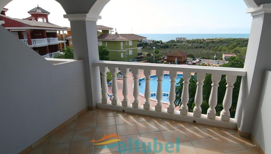Magnífico apartamento dúplex en Residencial Nerea, con vistas al mar y a la Sierra de Irta. La Urbanización se encuentra en una zona tranquila de Peñiscola, a tan solo 5 minutos en coche del centro y de las playas, y al lado del parque natural de la Sierra de Irta y sus bellas calas. Su excelente ubicación hace que esta vivienda sea ideal tanto como destino vacacional, como para vivir todo el año. Residencial Nerea es una urbanización privada con 3 piscinas para adultos y niños, calles peatonales, área infantil, jardines y chiringuito a pie de piscina con conexión wifi gratuita. El apartamento consta de dos plantas distribuidas en planta baja (primera planta real) con salón-comedor con salida a una preciosa terraza con vistas a la piscina comunitaria y al mar, un aseo y una cocina independiente totalmente equipada; y una planta superior con 2 dormitorios (con armarios empotrados) y 1 baño completo con bañera y segunda terraza. Todo exterior y muy luminoso, con calefacción y aire acondicionado. Se vende amueblado y con electrodomésticos. Le corresponde la plaza de parking nº 13.