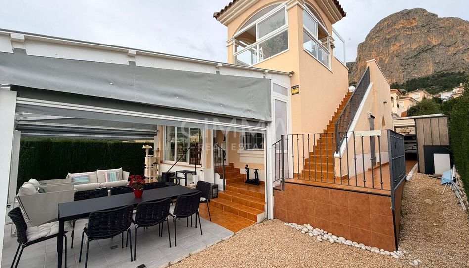Espectacular chalet independiente en esquina situado en la prestigiosa zona de Urbanizaciones de Polop, dentro de una exclusiva urbanización cerrada y videovigilada que garantiza privacidad, seguridad y un entorno residencial de alto nivel. A tan solo 5.000 metros de las playas de la Costa Blanca, esta vivienda ofrece el equilibrio perfecto entre la cercanía al mar y la tranquilidad de vivir rodeado de naturaleza, con el encanto único que caracteriza a la zona. La propiedad se asienta sobre una amplia parcela de 250 m2 y cuenta con una superficie construida de 125 m2, cuidadosamente distribuida para ofrecer comodidad, amplitud y funcionalidad, destacando además por ser un chalet en esquina con mayor privacidad y una entrada completamente techada con zona de aparcamiento. Su excelente orientación sur proporciona una luminosidad excepcional y un ambiente cálido y agradable durante todo el año.