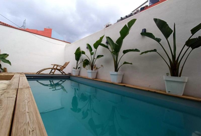 La casa dispone de dos dormitorios con armarios empotrados y aire acondicionado, además de un baño completo. La azotea ofrece vistas al mar, ideal para relajarse al atardecer. El espacio exterior es un verdadero lujo: una gran terraza en dos niveles incluye una zona de barbacoa y jacuzzi en el primer nivel, mientras que el segundo nivel alberga una piscina climatizada con cama balinesa.