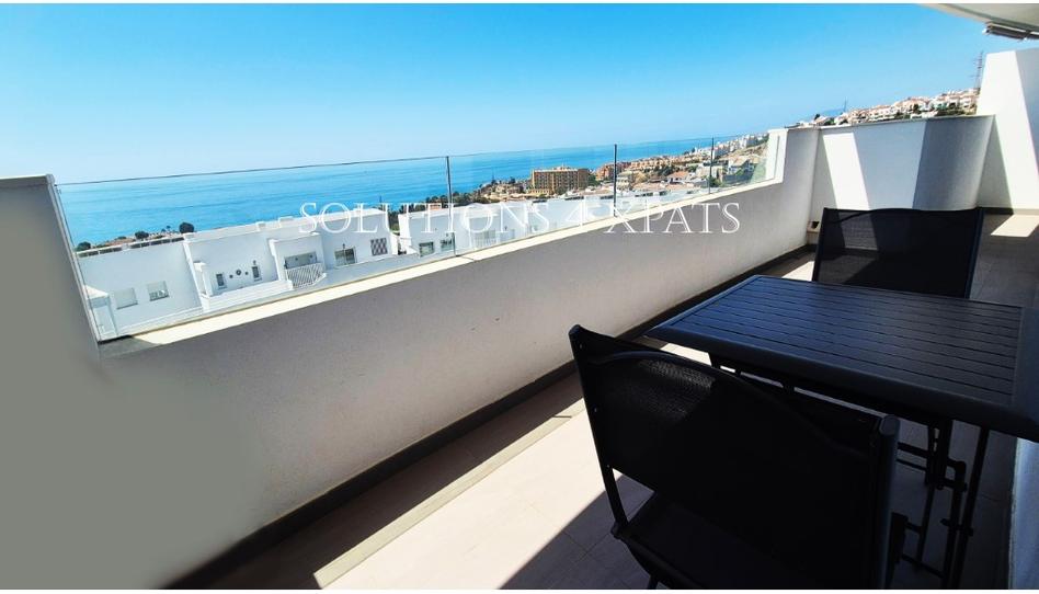 Luminoso y amueblado apartamento casi nuevo de 3 dormitorios y 2 cuartos de baño con vistas panorámicas del mar en una urbanización privada con 2 piscinas, zonas ajardinadas, parque infantil, pista de padel y club social comunitarios a 7 minutos andando del supermercado Lidl y a 20 minutos andando de la playa, paseo marítimo, restaurantes, tiendas, etc., y a 4 minutos en coche del centro comercial con sus cines, restaurantes, tiendas, supermercado, farmacia, etc.