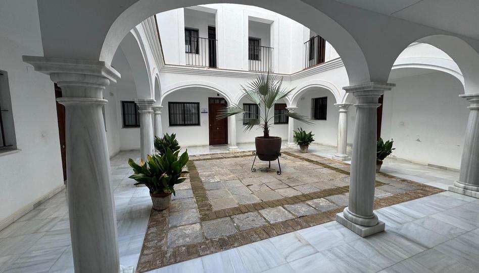 La vivienda se sitúa en un edificio que presenta un encantador patio interior andaluz, luminoso y muy cuidado, con columnas blancas, arcos tradicionales y plantas que aportan frescura al espacio. Este patio aporta un ambiente sereno y único, típico de las casas señoriales del centro histórico, y da una sensación de calma nada más entrar al inmueble.