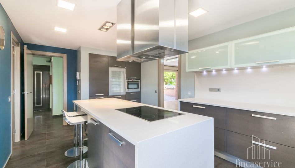 Cada rincón de la casa invita a disfrutar. La cocina con isla central se inunda de luz natural, mientras que el salón, presidido por una chimenea, abre sus ventanales hacia el skyline de Barcelona y las montañas que rodean el entorno. Desde la planta baja, una sala de juegos con cocina adicional conecta directamente con el jardín, creando el ambiente perfecto para celebraciones y encuentros.