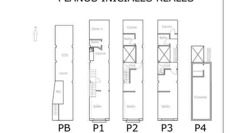 36-38m2 por planta aproximadamente. Techos muy altos. posibilidad de hacer otra vivienda en el local. Piso independiente en la primera planta. Dúplex en segunda y tercera plantas.