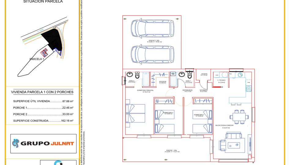 Chalets individuales de planta baja dividida en: 3 habitaciones, 2 baños, salón-comedor y cocina. Siendo opcional, garaje para vehículos. Todos nuestros chalets de obra nueva, llevan aerotermia para el agua caliente y suelo radiante.