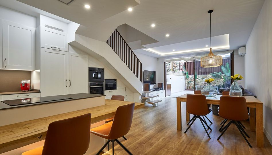 La cocina, de estilo contemporáneo, está equipada con electrodomésticos Premium NEEF de alta eficiencia, encimeras Neolith y una campana de diseño con mando a distancia integrada sin conductos visibles.