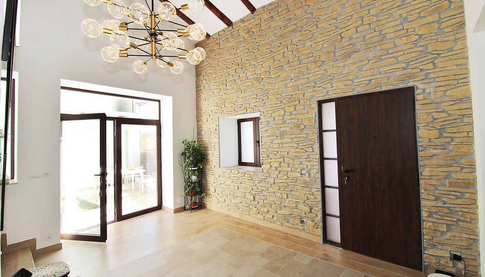 Espectacular casa adosada recientemente reformada con 240 m2 construidos, distribuidos en 3 plantas. Dispone en planta baja de espacioso e increible hall de entrada a doble altura para disfrutar de la sensación de espacio y luminosidad, desde este hall disponemos de acceso a patio privado de 40m2 con dos espacios a diferentes alturas, la zona de baño con piscina y la zona del cenador, ambas zonas con toldos retráctiles. El hall también nos da acceso al salón, amplio y luminoso con ventana a la zona de baño y acceso a la cocina, semi independiente, completamente amueblada, con encimera compacta porcelánica efecto mármol Laurent con pequeño y adorable office. La cocina nos da acceso a dos habitaciones, una utilizada como trastero y la otra como taller con ventana a la calle, entre ambas se encuentra el aseo.