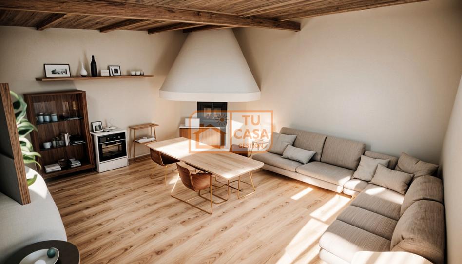 La construcción de piedra, con cerca de 100 metros cuadrados, cuenta con un acogedor salón-cocina que incluye una chimenea, perfecta para las noches de invierno.