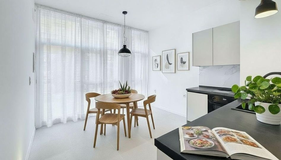 La cocina integrada se abre al salón-comedor creando un ambiente amplio, luminoso y contemporáneo. El dormitorio principal se ubica en la zona loft o en la zona interior según preferencias.