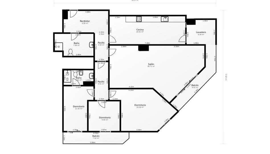 • Zona de Descanso: Dispone de 3 habitaciones, dos de ellas dobles de generosas dimensiones, perfectas para dormitorios de matrimonio o zonas de trabajo.