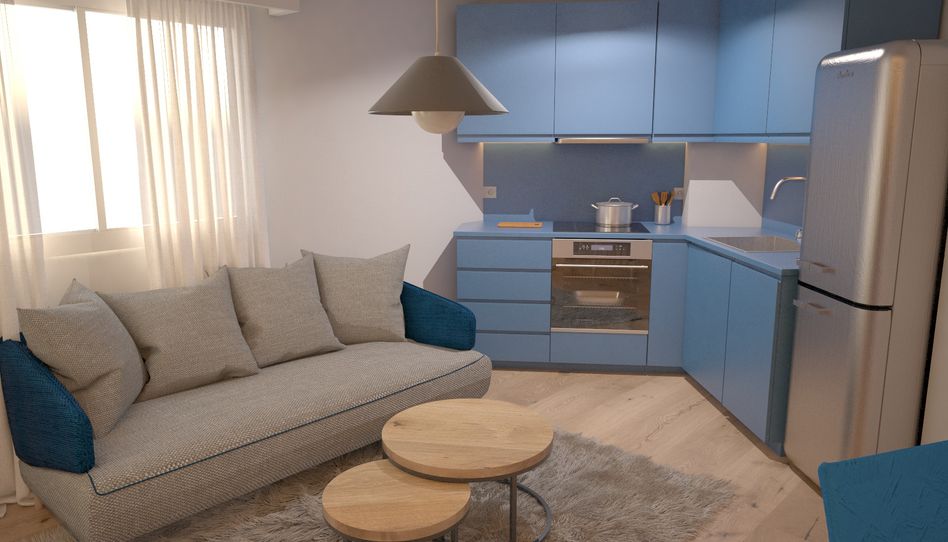 Vivienda F – Estudio de 1 Dormitorio y 1 Baño de 24 m2. Primera Planta con ascensor. Diseño a elegir; tematización chocolatera o, marina.