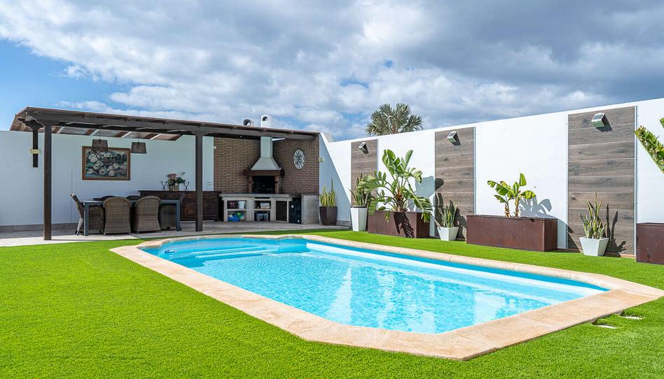 El exterior de la villa está diseñado para disfrutar del clima de Lanzarote al máximo, con una piscina privada rodeada de terrazas soleadas, ideales para tomar el sol o compartir momentos con familiares y amigos. La zona de comedor al aire libre, con barbacoa integrada, es perfecta para disfrutar en cualquier época del año.
