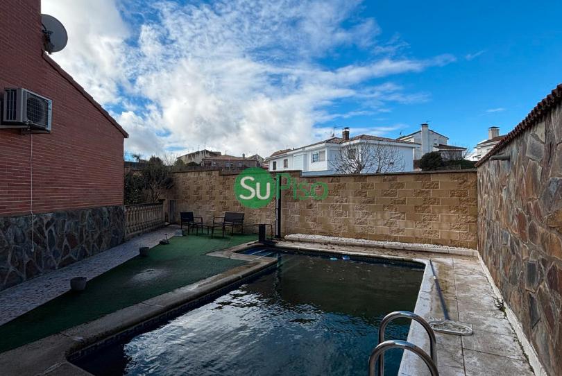 En el exterior, la propiedad destaca por sus excelentes espacios al aire libre. Dispone de un patio muy amplio con una piscina independiente, perfecta para disfrutar del buen tiempo, reuniones familiares y momentos de ocio. En la parte trasera de la vivienda encontramos otro patio adicional que incluye un trastero, aportando espacio extra de almacenaje.