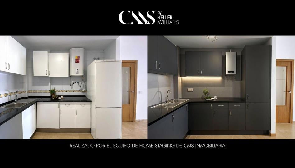 La cocina, moderna y funcional, se integra perfectamente en el salón sin sacrificar su propia identidad. Equipada con muebles de almacenamiento en color blanco y una elegante encimera de granito negro, ofrece un contraste sofisticado y atemporal. Incluye una campana extractora y espacio para los electrodomésticos principales. Su diseño intuitivo facilita la preparación de comidas y el mantenimiento diario.