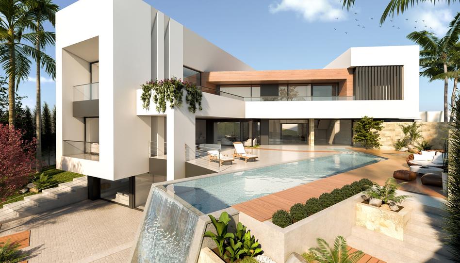 Esta impresionante villa de tres plantas incluye 5 dormitorios en suite, espaciosas y abundantes zonas de ocio al aire libre con jardín privado y piscina infinita, garaje para 2 coches y apartamento para el personal en el nivel inferior.