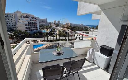 INMOTIVA SERVICIOS INMOBILIARIOS ofrece estudio en cuarta planta, situado en pleno centro de la zona turística de Las Américas, a tan solo 50 metros de la playa. Totalmente reformado, cuenta con un amplio balcón con vistas abiertas y parciales al mar. Es ideal tanto como inversión para alquiler vacacional como para residencia. El complejo ha sido completamente renovado y se encuentra muy bien mantenido. El apartamento dispone de unos 35 m² más 5 m² de terraza, además de zona de aparcamiento dentro del complejo. Piscina comunitar y zona de ocio. Listo para entrar a vivir. Contáctenos para concertar una visita.