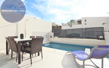 REFERENCIA 2660. Chalet pareado con piscina y parking en El Hornillo. La vivienda se ubica en la zona de El Hornillo, actualmente muy demandada por su tranquilidad y escaso tráfico, a pocos metros del centro comercial Águilas Plaza y de la Playa del Hornillo. El inmueble consta de 136m2 construidos, los cuales se distribuyen en salón-comedor con cocina americana con lavadero, 2 habitaciones dobles con armarios empotrados y 2 baños completos (uno de ellos en suite), todo en la misma planta. En la parte exterior cuenta con un poche con piscina con cascada y jacuzzi, zona de parking en la entrada y en la parte trasera un espacio para almacenamiento. En la parte superior cuenta con un amplio solárium, ideal para disfrutar de largas veladas con familia y amigos, provechando el buen tiempo característico de nuestra zona. Se entrega amueblado y equipado (a excepción de algunos muebles del salón), en perfecto estado de conservación. Dispone de aire acondicionado y calefacción central. Construcción muy reciente, en 2022. Puede contactar con nosotros sin compromiso para más información o concretar una visita, estamos seguros de que le encantará. * No incluidos en el precio los impuestos y gastos generados por la transmisión.