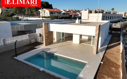 TODO UN LUJO A TU ALCANCE. Villa de ALTO STANDING. Reserva ya la última vivienda a la venta. Entrega prevista próxima fase principio verano 2026. Grupo Elimari promueve una Obra Nueva. Parcelas de unos 450 m2 situadas en la urbanización de Serramar en Alcanar Playa que dispone a menos de 300 m. el centro deportivo de Monte.Bahia y el Club tenis y padel de Serramar. La urbanización Serramar dispone de parada de autobús y esta ubicada a solamente 1,5 km al sur de la población de La Ràpita. El conjunto del inmueble tendrá una superficie de unos168 m2 construidos, de los cuales 26 m2 corresponderán a la terraza cubierta, 25 aproximativo de almacen y el resto de porches o otros elementos construidos. Distribuidas en una sola planta sin ningún tipo de barrera arquitectónica estas villas de diseño, dispondrán de 3 habitaciones dobles (posibilidad de 4), 2 cuartos de ducha, cocina americana con su amplio salón comedor con 2 grandes ventanales de 3,25 m. por 2,5 m. de altos. Desde esa estancia se podrá acceder a la amplia terraza cubierta de 26 m2 y a la zona piscina y jardín Las villas Marieli dispondrán de aire acondicionado por conductos En unos de los laterales, las villas Marieli tendrá la posibilidad de tener un trastero o un almacen de hasta 24 m2 construidos. El garaje y la piscina privada están incluidos en el precio. Grifería de calidad Carpintería interior blanca. Carpintería exterior de PVC blanco de la marca VEGA. Dispone de aire acondicionado frio/calor por conductos. Vivienda con calificación A en eficiencia energética. Comercializa Grupo Elimari especialista en la compra-venta de inmueble en la zona de les Terres de l`Ebre. Alcanar Platja se encuentra al sur de Cataluña a unos 320 km de la frontera francesa. Es una zona residencial cerca de Sant Carles de la Ràpita. Es especialmente conocida por su típica gastronomía. Alcanar Platja está situada entre la Sierra del Montsia, la bahia dels Alfacs y el Delta de l`Ebre. Gracias a esta situación privilegiada, hay un micro-clima. La magnífica bahía dels Alfacs permite a los amantes de los deportes náuticos, de disfrutar de momentos inolvidables. Nuestra agencia se dedica a la gestión en la compra -venta de inmuebles. Somos consejeros sobre temas fiscales, obtención de N.I.E, apertura de cuenta, notario etc. También podemos asesorarle en la gestión y tramitación de herencias o donaciones. Hablamos castellano, catalán, francés, inglés y alemán.