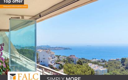 Este luminoso piso en Cas Catalá impresiona por sus espectaculares vistas al mar y está situado en la 7ª planta de un cuidado complejo residencial con ascensor - en una de las zonas residenciales más exclusivas del suroeste de la hermosa isla de Mallorca. El piso orientado al sur tiene una generosa superficie construida de aprox. 317 m² (de los cuales aprox. 240 m² son superficie habitable), que se distribuye de la siguiente manera: Una acogedora zona de entrada conduce al amplísimo salón-comedor con chimenea y acceso a una terraza de aprox. 50 m² con vistas panorámicas al entorno mediterráneo y al fantástico mar. También hay una gran cocina totalmente amueblada, cuatro amplios dormitorios, tres baños, un lavadero y un aseo de invitados. El cuidado complejo residencial ofrece a los propietarios una preciosa piscina comunitaria con fantásticas vistas, ideal para disfrutar al máximo de los cálidos días de verano. También hay un aparcamiento subterráneo comunitario. Las características de este atractivo piso incluyen: Aire acondicionado frío/calor, ventanas de doble acristalamiento, chimenea así como suelos de mármol. Dos plazas de aparcamiento subterráneo están incluidas en el precio. La ubicación es muy atractiva - en la cima de una colina, a pocos minutos en coche de hermosas playas, maravillosas bahías de aguas turquesas y el famoso campo de golf de Bendinat. El centro de Palma de Mallorca está a unos 10 minutos en coche.