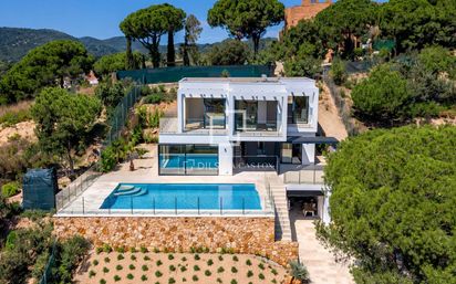 Lucas Fox presenta esta moderna casa de reciente construcción con vistas al mar y a la montaña, en la exclusiva urbanización Els Pinars, en Lloret del Mar, a solo 5 minutos del centro y de las principales zonas de ocio. La vivienda se asienta sobre una parcela de 830 m² orientada al este y ofrece unas vistas despejadas y encantadoras al entorno natural. La vivienda se distribuye en tres plantas. En la planta principal, se dispone el elegante recibidor, un amplio salón-comedor con acceso a una magnífica terraza con zona de piscina, una cocina independiente totalmente equipada, un aseo de cortesía y una zona de lavandería. En la planta superior, encontramos dos dormitorios dobles, un baño completo y el dormitorio principal con baño privado y salida a una terraza con vistas panorámicas al mar y a la montaña. En la planta inferior, se ofrece un garaje con capacidad para dos vehículos, trastero y una versátil sala polivalente, ideal para habilitar como gimnasio, sala de cine o apartamento para invitados. Una propiedad ideal tanto como residencia habitual como para disfrutar de temporadas de descanso en la Costa Brava, con todas las comodidades y unas vistas excepcionales.