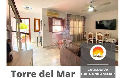 ! Exclusiva casa unifamiliar, con terraza y orientación sur, a pocos metros de la playa de Torre del Mar by Solymar Holiday. Descubre este espectacular Chalet adosado con 4 dormitorios, parking y piscina comunitaria en la prestigiosa urbanización Jardines del Rocío en Torre del Mar. Esta vivienda esta ubicada a pocos metros de la playa y el Paseo Marítimo, con una amplia terraza ORIENTACIÓN SUR para que disfrutes del sol y la brisa mediterránea cada día. Características que enamoran: En la planta Baja tenemos un espacioso y luminoso salón-comedor con ventiladores de techo y aire acondicionado, ideal para disfrutar todo el año. Un dormitorio, vestíbulo y un aseo recién reformado. Cocina independiente en muy buen estado y totalmente equipada con electrodomésticos de calidad. Patio interior de 11m². Tiene un espectacular jardín delantero con porche y terraza de 44m² . En la primera planta hay 3 dormitorios dobles con armarios empotrados y ventanas al exterior. Uno de los dormitorio tiene una terraza de 8m² con vistas orientación sur, y por ultimo tenemos un baño completo con plato ducha y ventana al exterior. En la segunda planta es una buhardilla de unos 40 m² aproximadamente, acondicionada con baño completo con bañera y ventana al exterior, un espacio para guardar cosas extras y una pequeña terraza que ofrece vistas. La vivienda cuenta con un Sótano de gran tamaño, trastero y garaje cerrado con espacio para 2 coches grandes. No pierdas la oportunidad de comprar esta casa luminosa, semi reformada, lista para entrar a vivir! Solicita tu visita llamándonos al nuestro teléfono de ventas. Solymar Holiday. (Compra-venta y Gestión de vivienda vacacional) En cumplimiento del decreto 218/2005 de 11 de Octubre de la Junta de Andalucía, se informa que los gastos notariales, los derechos registrales, el impuesto sobre transmisiones patrimoniales y LOS HONORARIOS DE LA AGENCIA están incluidos en el precio de esta publicación.
