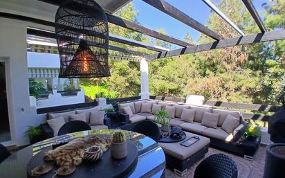 Magnífico ático dúplex de 3 dormitorios, diseñado individualmente, en la zona más exclusiva de Benalmádena Nueva Torrequebrada. Con vistas al hoyo 5 del campo de golf de Torrequebrada. Con una superficie construida de 219 m2, vivienda 146 m2. Orientación Noreste y Sur. Año de construcción 2003. El apartamento ofrece vistas panorámicas desde cada una de sus tres terrazas. La entrada principal está a solo dos pasos del ascensor que da acceso a las dos plazas de aparcamiento subterráneo y trastero. El acogedor pasillo conduce a la cocina a la izquierda, al salón y al dormitorio de la planta baja a la derecha y, frente a usted, a las escaleras que suben a la planta superior. La cocina ha sido renovada con electrodomésticos Siemens integrados y encimeras de granito. Originalmente había un pequeño baño junto a la cocina, pero, como ocurre con la mayoría de los vecinos, este se ha eliminado y se ha sustituido por un comedor con muebles a medida. Junto a la cocina hay un lavadero y una puerta a la pequeña terraza orientada al suroeste con vistas a la piscina y los jardines con vistas a la bahía de Fuengirola. El salón comedor mide 4,1 por 5,1 metros y da a una gran terraza con vistas al campo de golf. Está parcialmente cubierta por un techo y el resto por persianas correderas y tiene muebles de alta calidad y un calentador de infrarrojos. Junto al salón hay un dormitorio doble y un baño. El nivel superior contiene el dormitorio principal, otro dormitorio actualmente utilizado como vestidor y un baño con ducha renovado. Hay una terraza desde el dormitorio principal que da al campo de golf, parte de la cual se ha cerrado para hacer un trastero para cojines de tumbonas, etc. El apartamento tiene suelos de mármol crema y aire acondicionado por conductos en toda la casa. Todos los muebles y accesorios son de la más alta calidad y se han mantenido en las mejores condiciones. Hay un trastero de 4 metros cuadrados sobre el nivel del aparcamiento. Una urbanización de alta calidad que no permite alquileres turísticos. Está bordeada por dos lados por el campo de golf y a 800 metros del mar. La urbanización cuenta con 3 grandes piscinas, saunas, gimnasio y extensos jardines subtropicales. Inmediatamente fuera de la urbanización hay una parada de autobús para el servicio 103 de Torremuelle a Benalmádena pueblo a través de la estación de tren en Arroyo de la Miel. También hay una parada de taxis. Un supermercado Mercadona y otras tiendas y servicios están a solo 300 metros de distancia y 8 bares y restaurantes están a un corto paseo. Con esta combinación única de calidad, ubicación y comodidades, esta propiedad será una fantástica casa de vacaciones o residencia permanente. Visita recomendada. Magnificent, individually designed, 3-bedroom duplex penthouse in the most exclusive area of Benalmádena Nueva Torrequebrada. Overlooking the 5th hole of the Torrequebrada golf course. With a built area of 219 m² and a living area of 146 m², it boasts a northeast and south orientation. Built in 2003, the apartment offers panoramic views from each of its three terraces. The main entrance is just steps from the elevator, which provides access to the two underground parking spaces and storage room. The welcoming hallway leads to the kitchen on the left, the living room and the lower-level bedroom on the right, and straight ahead to the stairs leading to the upper floor. The kitchen has been renovated with integrated Siemens appliances and granite worktops. Originally, there was a small bathroom next to the kitchen, but, as is the case with most of the neighbors, this has been removed and replaced with a dining area featuring custom-made furniture. Next to the kitchen is a utility room and a door to the small southwest-facing terrace overlooking the pool and gardens, with views of Fuengirola Bay. The living/dining room measures 4.1 by 5.1 meters and opens onto a large terrace overlooking the golf course. It is partially covered by a roof and the rest by sliding blinds, and features high-quality furnishings and an infrared heater. Adjacent to the living room is a double bedroom and a bathroom. The upper level contains the master bedroom, another bedroom currently used as a dressing room, and a renovated bathroom with a shower. There is a terrace off the master bedroom overlooking the golf course, part of which has been enclosed to create a storage area for sun lounger cushions, etc. The apartment has cream marble floors and ducted air conditioning throughout. All furnishings and fittings are of the highest quality and have been maintained in excellent condition. There is a 4-square-meter storage room above the parking level. This is a high-end development that does not permit holiday rentals. It is bordered on two sides by the golf course and is 800 meters from the sea. The complex features three large swimming pools, saunas, a gym, and extensive subtropical gardens. Just outside the complex is a bus stop for the 103 service from Torrem