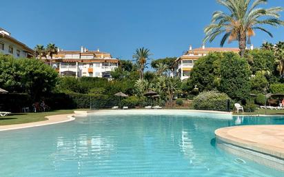 Se ofrece esta luminosa vivienda totalmente amueblada y decorada, con una superficie aproximada de 90 m², situada en una urbanización privada con excelentes servicios. La propiedad se distribuye en 2 dormitorios con armarios empotrados, 2 cuartos de baño con bañera, un amplio y luminoso salón-comedor con acceso a una agradable terraza orientada al oeste y vistas abiertas a la piscina, una cocina amplia y totalmente equipada con todos los electrodomésticos y lavadero independiente. Dispone de aire acondicionado frío-calor, suelos de mármol, ventanales con doble acristalamiento y puerta principal blindada. Incluye plaza de garaje privada con cámaras de seguridad y acceso directo a la vivienda. La urbanización es cerrada, cuenta con vigilancia y conserje 24 horas y ofrece completas zonas comunes: zonas verdes de paseo, 2 piscinas con solárium, pistas de pádel, parque infantil y un agradable restaurante dentro del complejo. Excelente ubicación, a solo 5 minutos de Puerto Banús, El Corte Inglés, supermercados, bares, tiendas, restaurantes, campos de golf y playas, y a pocos minutos en coche del centro de Marbella. Una propiedad ideal tanto para residencia habitual, segunda vivienda o inversión.