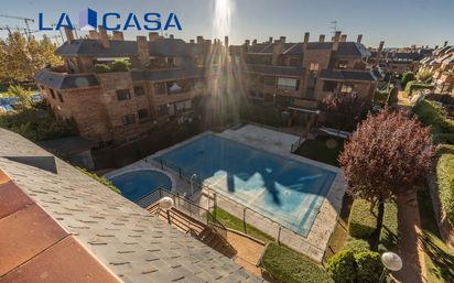 Ático con dos terrazas y magníficas zonas comunes en Las Rozas. Se presenta este impresionante ático totalmente exterior de 123 m2 construidos, situado en una moderna finca de 2003 con ascensor, dentro de una de las áreas más tranquilas y residenciales de Las Rozas. La vivienda ofrece una distribución muy cómoda: cuatro dormitorios, dos baños completos, un amplio salón-comedor con acceso a una terraza y una cocina independiente con salida a una segunda terraza, perfecta para disfrutar del exterior en cualquier momento. Su orientación y su condición de vivienda exterior garantizan una luminosidad excelente durante todo el día, además de estancias amplias y bien ventiladas. El edificio pertenece a una urbanización privada con unas zonas comunes excepcionales: dos piscinas, dos pistas de pádel, amplias áreas ajardinadas, garaje y trastero. Un entorno que aporta comodidad, seguridad y una alta calidad de vida. Ubicado en una de las mejores zonas de Las Rozas, este ático combina la tranquilidad de un entorno residencial con la cercanía a todos los servicios: colegios, supermercados, centros deportivos, restaurantes, zonas verdes y áreas comerciales tan reconocidas como Las Rozas Village o Heron City. Además, disfruta de excelentes comunicaciones tanto en transporte público -autobuses y Cercanías Renfe- como por carretera, con acceso rápido a la A-6 y la M-50. Una oportunidad excepcional para quienes buscan un ático amplio, luminoso y con terrazas, dentro de una urbanización completa y bien cuidada, ideal para disfrutar de la calidad de vida que caracteriza a Las Rozas.. **El precio de venta del inmueble no incluye los gastos de la compraventa ni los tributos que la graven (ITP o IVA), ni, en su caso, los gastos notariales, registrales o los honorarios de agencia que deba abonar el comprador. **.