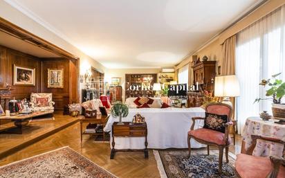 Único en la zona! Lujoso piso, señorial y muy espacioso, sol todo el día, con gran terraza y vistas al Turó Park. Zona privilegiada, junto al Turó Park, una de las ubicaciones con mayor prestigio de Barcelona. Propiedad muy singular que rebosa en cada uno de sus rincones elegancia, señorío, privacidad, espacio y confort. La vivienda tiene una superficie de 550m2 construidos con comunes y 497m2 construidos interiores de vivienda. Espectacular zona de día con un gran salón con biblioteca integrada, además de un comedor independiente con vistas abiertas. Una gran cocina office completamente equipada, con mucha luz y funcional. Zona de aguas. También incluye un aseo de cortesía y un área de servicio con dos habitaciones. En la zona de noche encontramos un amplio distribuidor que conduce a cinco habitaciones exteriores y muy luminosas (una espectacular suite principal con vestidor, baño completo y salida a terraza; dos habitaciones en suite con baño propio cada una y con armarios empotrados; y dos dormitorios dobles con armarios empotrados y que comparten un baño) Zona exterior con una gran terraza y preciosas vistas al Turó Park. En el precio se incluyen 2 plazas de parking situadas en la misma finca. Edificio señorial con servicio de conserjería y ascensor. Su ubicación es una de las más prestigiosas y reconocidas de Barcelona, en la zona alta de la ciudad, con una amplia variedad de restaurantes, elegantes locales con artículos de alta calidad, boutiques de primeras marcas, joyerías de lujo, centros de estética, peluquerías, clínicas, gimnasios, escuelas y universidades de alto nivel, y con muy buenas comunicaciones con el transporte. ¡Cornex Capital te acompaña a visitar este piso de ensueño en el Turó Park!
