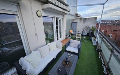 ÁTICO EN VENTA – FOTOCASA Ático con terraza de 20 m² y garaje, 7ª planta, orientación sur – listo para entrar. IMPORTANTE- ATICO ESTUDIO TIPO LOFT SIN DORMITORIO INDEPENDIENTE. Ático en 7ª planta con terraza privada de 20 m², orientación sur y garaje incluido en zona familiar. Estudio en perfecto estado, suelo radiante y aire por conductos. Cercanías a 5 min andando. Listo para entrar a vivir. Totalmente amueblado. DESCRIPCIÓN Ático estudio en séptima planta, con terraza privada de 20 m², orientación sur y plaza de garaje subterránea incluida, situado en Puente de Alcocer (Villaverde). La vivienda cuenta con 90 m² construidos, con una distribución muy bien aprovechada: -30 m² útiles de vivienda, tipo estudio. -20 m² útiles de terraza, amplia, soleada y realmente disfrutable. -Cocina nueva totalmente equipada con electrodomésticos integrados incluidos. -Plaza de garaje subterránea de 10 m², incluida en el precio. El inmueble se encuentra en perfecto estado, listo para entrar a vivir, sin necesidad de reformas. Dispone de aire acondicionado por conductos con bomba de calor y suelo radiante, una combinación poco habitual en este tipo de viviendas y muy valorada por confort y eficiencia energética. La altura y la orientación sur aportan luz natural durante todo el día, además de privacidad y sensación de amplitud, especialmente destacables en un ático. La terraza se integra como una prolongación natural del salón, ideal para comer, trabajar o relajarse al aire libre. Edificio con ascensor, bien conservado, y gastos de comunidad de 90 €mes. UBICACIÓN Y COMUNICACIONES A 5 minutos andando de la estación de Cercanías Puente de Alcocer, con varias líneas de autobús en el entorno y metro a unos 20 minutos a pie. A 5 minutos del Parque Forestal Julio Alguacil Gómez, ideal para paseos y deporte, y con acceso directo a la M-40 y la A-42, lo que permite una conexión rápida con el centro de Madrid y otras zonas de la ciudad. Por tipología, estado y características, es u
