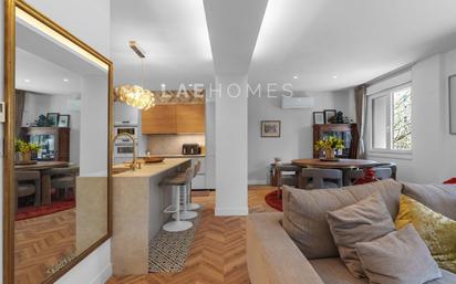Exclusiva vivienda de 170 m2 útiles situada al inicio de la Avenida Sancho el Sabio, una de las zonas más demandadas y consolidadas de San Sebastián. Ubicada en una tercera planta, combina amplitud, diseño, calidad y tecnología en un entorno privilegiado. La propiedad ha sido totalmente reformada con materiales de alta gama y se presenta lista para entrar a vivir. Dispone de tres habitaciones de grandes dimensiones, todas ellas con armarios empotrados lacados y hechos a medida. La suite principal cuenta además con un amplio vestidor, elegante baño en suite con bañera y ducha independiente, y salida directa a terraza privada. En total, la vivienda ofrece tres baños completos, dos de ellos en suite, aportando máxima comodidad y privacidad. Los techos altos y las ventanas en todas las estancias proporcionan una magnífica luminosidad y sensación de espacio. El suelo de madera en espiga con calefacción radiante y termostato independiente en cada estancia garantiza confort absoluto durante todo el año. Además, dispone de aire acondicionado en todas las habitaciones. La cocina, de la reconocida marca Santos, está totalmente equipada con electrodomésticos en garantía. Toda la vivienda cuenta con iluminación LED de bajo consumo instalada en cada ambiente. Entre sus calidades destacan las ventanas de triple acristalamiento para un excelente aislamiento térmico y acústico, y persianas motorizadas con sistema domótico, controlables desde el móvil incluso cuando no estás en casa. Se vende completamente amueblada y equipada, tal y como se muestra, cuidada hasta el último detalle. El edificio, de estructura de hormigón, ha sido rehabilitado en fachadas y cubiertas, sin obras pendientes. Portal accesible. Incluye trastero reformado de casi 10 m2 en el mismo edificio, con ventilación natural. Posibilidad de alquilar plaza de garaje a pocos metros. Una propiedad única en una ubicación estratégica, ideal para quienes buscan amplitud, calidad y confort en pleno San Sebastián.
