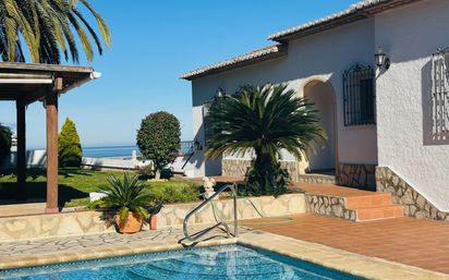 Esta Villa se encuentra sobre un terreno de casi 800 m² y cuenta con 275 m² construidos distribuidos en dos plantas. En la planta baja (150 m²) se encuentran espacios prácticos y funcionales: un garaje amplio, un cuarto de lavandería, un cuarto de calderas, una habitación con baño y dos almacenes, ofreciendo múltiples posibilidades de uso y almacenamiento. La planta principal (126 m²) más 21 m² de terraza se accede a través de un porche cubierto que conduce a un elegante vestíbulo. Aquí se encuentra un salón-comedor espacioso y luminoso, con techo alto y vigas de madera, una chimenea de pellets y salida a una terraza con vistas panorámicas al mar. La cocina está completamente equipada, perfecta para quienes disfrutan de cocinar y recibir invitados. La zona de descanso incluye dos dormitorios con armarios empotrados, uno de ellos con baño en suite, además de otro baño con ducha y una habitación más pequeña actualmente utilizada como despacho. La villa dispone de calefacción central por gasoil con radiadores, ventanas de doble cristal de PVC con mosquiteras, y aire acondicionado para garantizar confort durante todo el año. En el exterior, la propiedad cuenta con una piscina de 8×4 m, barbacoa, pérgola y un jardín de bajo mantenimiento con césped, setos y grava, creando un espacio ideal para disfrutar del aire libre y del clima mediterráneo. Esta villa es perfecta para quienes buscan vivir todo el año en Denia, combinando comodidad, estilo y unas vistas al mar inigualables. NO LLAMADAS DE OTRAS AGENCIAS GRACIAS!