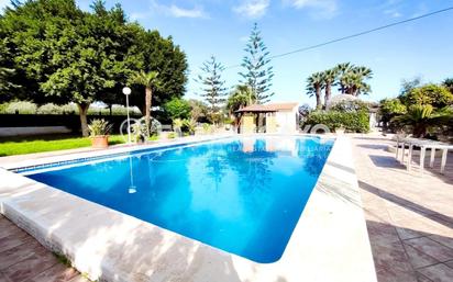 El Moncayo Properties presenta este espectacular chalet independiente en una de las zonas más cotizadas del campo de Elche. Cuenta con 2525m de parcela según escritura con amplias zonas ajardinadas, zona de aparcamiento techada, caseta con barbacoa, piscina con aseo y vestidor, zona de huerto y árboles frutales y amplia terraza porchada, ideal para disfrutar de comidas o cenas con amigos o en familia. Junto al porche encontramos una vivienda unifamiliar que cuenta con 322m2 según catastro con la siguiente distribución: - Amplio salón comedor, amueblado y luminoso que da acceso a todas las dependencias de la casa. - Dos cocina independientes, equipadas con electrodomésticos, ambas con chimenea. - Tres dormitorios amplios con camas dobles, armarios empotrados y todos con baño en suite. - Una cuarta habitación habilitada como sala de estar. - Gran comedor acristalado con acceso al jardín exterior. - Tres baños completos y amplios que cuentan dos de ellos con bañera y uno con plato de ducha. Además de lavabos amplios con armarios, inodoros y bidets. - Una pequeña bodega-despensa. - Un quinto dormitorio actualmente habilitado como trastero. Esta vivienda esta lista para entrar a vivir, cuenta con acabados de gran calidad, pared y suelos de mármol, aire acondicionado y calefacción por conducto en todas las estancias, gran espacio de almacenamiento y todas las estancias son exteriores por lo que goza de mucha luz natural la mayor parte del día. Además mediante una escalera exterior accedemos a la terraza solárium con maravillosas vistas al paisaje. Ubicada a escasos metros de la ciudad de Elche y sus localidades pedáneas, cerca de supermercados y restaurantes y a tan solo 12 minutos de las playas de La Marina, Santa Pola y Guardamar del Segura. Ven a conocer la casa de tus sueños!! Llámanos y ven a visitarla!