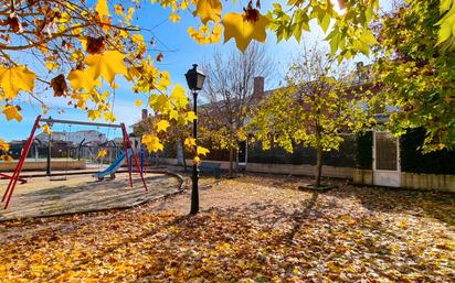 Estupendo chalet pareado de cinco habitaciones y cuatro baños. Bien situado, cerca del casco urbano, cuenta con todos los comercios y servicios locales a poca distancia. Ubicado de esquina y dentro de una urbanizacion privada, que cuenta con una bonita zona verde de 2.000 m2, de jardin arbolado, con parque, y una gran piscina. La vivienda ocupa parte de una parcela propia de 176 metros cuadrados, esta construida en tres plantas, albergando en la parte izquierda de la planta baja (lado calle) el garaje, junto a una habitacion, mas un baño con ducha, y en la parte derecha (lado jardin) tiene cocina y salon en paralelo, ambos espacios con acceso directo al patio/jardin. En la primera planta hay tres dormitorios con armarios empotrados y dos baños completos (uno en suite). La planta superior abuhardillada, esta ocupada completamente por una gran suite, muy espaciosa, con un baño doble, que incluye jacuzzi y ducha.