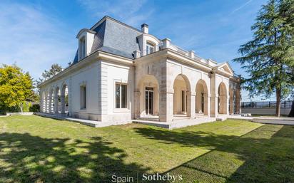 Majestuosa propiedad de inspiración château parisino, concebida no solo como residencia, sino como símbolo de estatus, orden y refinamiento recién reformada, situada en el corazón de la prestigiosa colonia Conde de Orgaz, una de las zonas residenciales más seguras y demandadas de Madrid, especialmente valorada por el cuerpo diplomático. La arquitectura responde al clasicismo francés tardío. La fachada, solemne, está construida en piedra caliza clara. Un tejado de pizarra gris corona el conjunto, salpicado de ventanas abuhardilladas. La finca se asienta sobre una parcela privada de 1.375 m² y cuenta con 1.200 m² construidos, distribuidos en tres amplias plantas, concebidas para albergar tanto una residencia oficial como un espacio idóneo para actos institucionales, recepciones diplomáticas y eventos de alto nivel. La entrada principal cuenta con arcos que recuerdan las casas château del París del siglo XVIII, que indican con su sobriedad en piedra caliza la jerarquía noble del acceso, concebido como un umbral ceremonial donde la arquitectura anuncia, con discreción y equilibrio, el carácter representativo de la residencia. La planta noble está dedicada íntegramente a la representación. Dispone de dos grandes salones de recepción, un elegante hall central, flanqueado a izquierda y derecha por dos grandes salones, perfectamente insonorizados para mantener reuniones ejecutivas con total privacidad, ambos salones cuentan con chimeneas de mármol, verdaderos centros simbólicos de cada estancia que rematan los espacios con elegancia y proporción. Los suelos de madera de roble macizo, colocado en diseño Versalles indican con su lenguaje histórico el salón. Al cruzar este umbral, entramos al corps de logis auténtico eje de la casa, el visitante entra en un gran vestíbulo de honor, de gran altura concebido como espacio de transición. Desde aquí parte una escalera imperial que conduce a los apartamentos nobles.