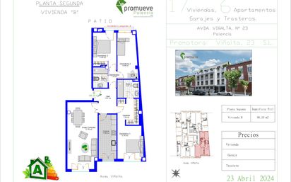Nueva promoción de viviendas con garajes y trasteros ubicadas en un enclave natural de la capital Palentina, junto al canal, y a un paso del centro de Palencia. Se oferta vivienda de 98 m2 útiles en planta segunda, 2 dormitorios con armarios empotrados , 2 baños y amplio salón estar comedor. Este edificio de nueva construcción te da la oportunidad de disfrutar de las mejores calidades en tu vivienda, con materiales de 1ª calidad de primeras firmas nacionales e internacionales, puertas de paso acabadas en lacado liso en blanco. Estas viviendas estarán dotadas de una instalación de aerotermia, para calefacción, ACS y suelo refrigerante, una energía limpia, renovable que favorece al medio ambiente y mediante la cual se consigue un ahorro de hasta 70%. Calefacción individual por suelo radiante con contadores y termostatos individuales. Opción a garaje y trastero. Más información de venta de viviendas de uno, dos y tres dormitorios en esta promoción.