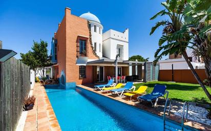 Descubre la joya de Chiclana: un chalet independiente que redefine el concepto de lujo y confort. Se encuentra situado en una parcela de 500 m2 en la mejor zona de la ciudad, esta vivienda destaca por su construcción con materiales de primera calidad y un diseño arquitectónico único que combina elegancia y funcionalidad. IDEAL COMO INVERSIÓN Y DISFRUTE, ya que cuenta con licencia turística para poder invertir y tener una segura oportunidad de negocio. Con tres plantas que ofrecen amplios espacios. La planta baja te recibe con un hall distribuidor que da acceso a un gran salón comedor, ideal para reuniones familiares y sociales. La cocina office, moderna y equipada, se conecta a un gran PORCHE con cerramientos de mallorquina y BARBACOA, perfecto para disfrutar de comidas al aire libre junto al jardín y la espectacular PISCINA. Además, cuenta con un dormitorio y un baño completo, brindando comodidad y privacidad. La primera planta es un refugio de tranquilidad, donde se encuentra el dormitorio principal en suite, que incluye un vestidor y un baño privado, junto a tres dormitorios adicionales, uno de ellos, el de invitados, con buhardilla y maravillosa terraza, ideal para disfrutar de las vistas. En el sótano, destinado como piso independiente, actualmente destinada esa zona de la vivienda como alquiler turístico, una INVERSIÓN SEGURA! Descubrirás un espacio completo con iluminación natural gracias a un encantador patio inglés, con un hermoso limonero, que incluye un salón comedor con cocina americana, tres dormitorios, dos baños (uno en el dormitorio principal), un cuarto de lavandería con lavadora, secadora y un trastero. Dispone de garaje. Las CALIDADES de la vivienda son extraordinarias! Destacar que dispone de suelo radiante, ventanas tipo climalit, aire acondicionado centralizado, la planta de arriba se han instalado spilts de aire acondicionado frío /calor en todas las habitaciones, y en la planta baja centralizado, toda la comodidad a tu alcance. Descubre el lujo en su máxima expresión con esta impresionante vivienda que cuenta con una zona de BARBACOA perfecta para tus reuniones y una espectacular PISCINA rodeada de tumbonas, ideal para relajarte bajo el sol. Descubre la vida de lujo en esta exclusiva zona residencial, ubicada a solo 5 minutos del encantador pueblo. Con colegios, institutos, farmacias , medios de transporte, comercios, supermercados...a tu alcance, tendrás todo lo que necesitas al alcance de la mano. Además, la playa está a solo 6 km, ¡perfecta para disfrutar del sol y el mar cuando desees! Disfruta de un entorno exclusivo, donde el diseño moderno se combina con exuberantes áreas verdes y césped bien cuidado, todo adornado con una decoración colorida y original, que transforma cada rincón en un verdadero sueño. ¡Haz de esta casa tu nuevo hogar y vive la experiencia de la elegancia y el confort! Impuestos, honorariosy gastos del comprador derivados de la compraventa no incluidos en el precio. El consumidor tiene a su disposición la Ficha Informativa de la Vivienda conforme a la normativa vigente. ✔ Contamos con Seguro de Caución y Responsabilidad Civil para la plena garantía de nuestros clientes. ✔ Más de 28 años de experiencia avalan nuestra trayectoria, profesionalidad y compromiso. Operación sujeta a ITP, cuyo tipo general es del 7% respecto al precio de venta, en virtud de lo dispuesto en el Ley 5/2021, de 20 de octubre, de Tributos Cedidos de la Comunidad Autónoma de Andalucía. El comprador, en caso de que querer adquirir la vivienda a través de la agencia, deberá abonar a ésta unos honorarios que ascienden al 3% del precio de la compraventa, más IVA del 21%. Los gastos aproximados de Notaría y Registro se cifran entre 800€ y 1600€, el importe exacto dependerá del precio final de la compraventa, número de copias de la escritura, número de páginas de la escritura, complejidad, etc, en virtud de lo dispuesto en el Ane