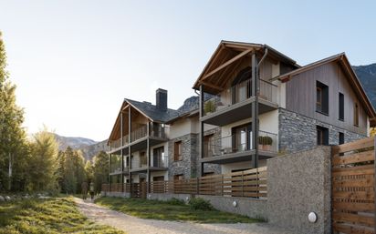 Apartamento de obra nueva en la promoción Residencial ZIMMA (FASE 5) situado en BENASQUE, localidad con todos los servicios en pleno Pirineo Aragonés. Los suelos gres porcelánico de primera calidad en baños. Gres para exteriores antideslizante en terrazas. Pavimiento flotante laminado en el resto de la vivienda. Calefacción y agua caliente; sistema individual de aerotermia, suelo radiante y refrescante. Las cocinas vienen con todos los electrodomésticos , incluido microondas y lavadora, encimera y frente de la encimera en material porcelánico y armarios altos y bajos. Los baños vienen completamente equipados, incluida la mampara. Presenta una carpintería exterior de madera, vidrio con cámara de gas argón y hoja interior bajo emisiva. Contraventanas con entarimados de manera en dormitorios, barandillas de acero en terrazas. Cerramientos de acero y tabla de madera en terrazas de planta baja. Cuenta con cuarto lavandería. Garaje y trastero incluidos en el precio. Amplias plazas de parking. Preinstalación eléctrica de carga de vehículos en garaje. Instalación eléctrica en trasteros de gran tamaño, para poder instalar calienta botas, cargador de bicis, etc. Este inmueble pertenece al Edificio 3 #ref:ziMMa Fase 5.3.1.B